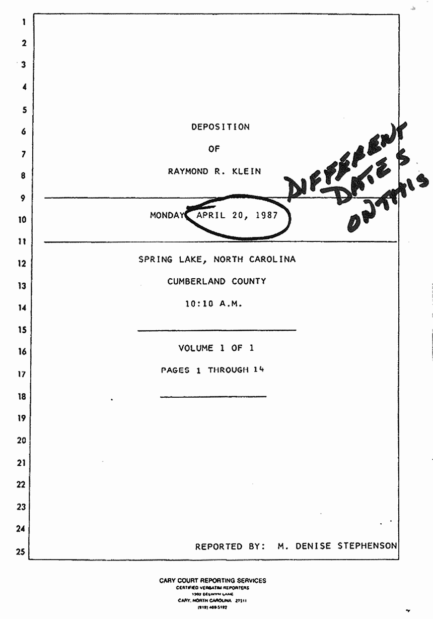 April 20, 1987: Deposition of Raymond Klein, p. 1 of 14
