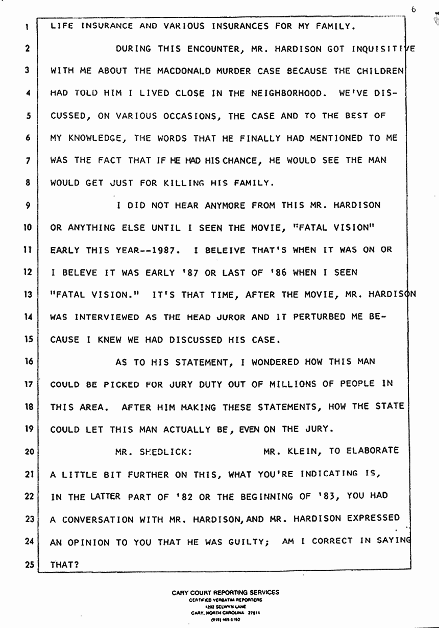 April 20, 1987: Deposition of Raymond Klein, p. 6 of 14