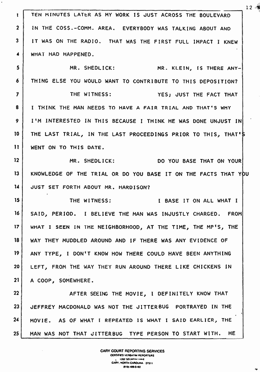 April 20, 1987: Deposition of Raymond Klein, p. 12 of 14