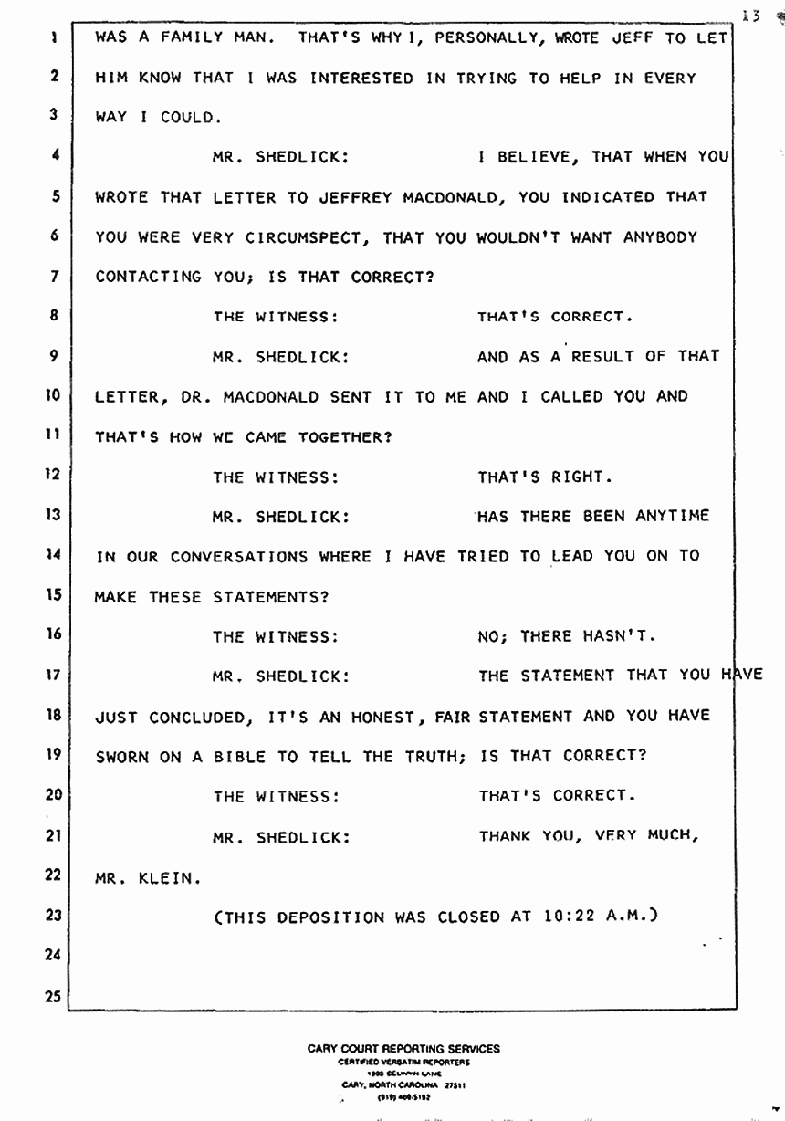 April 20, 1987: Deposition of Raymond Klein, p. 13 of 14