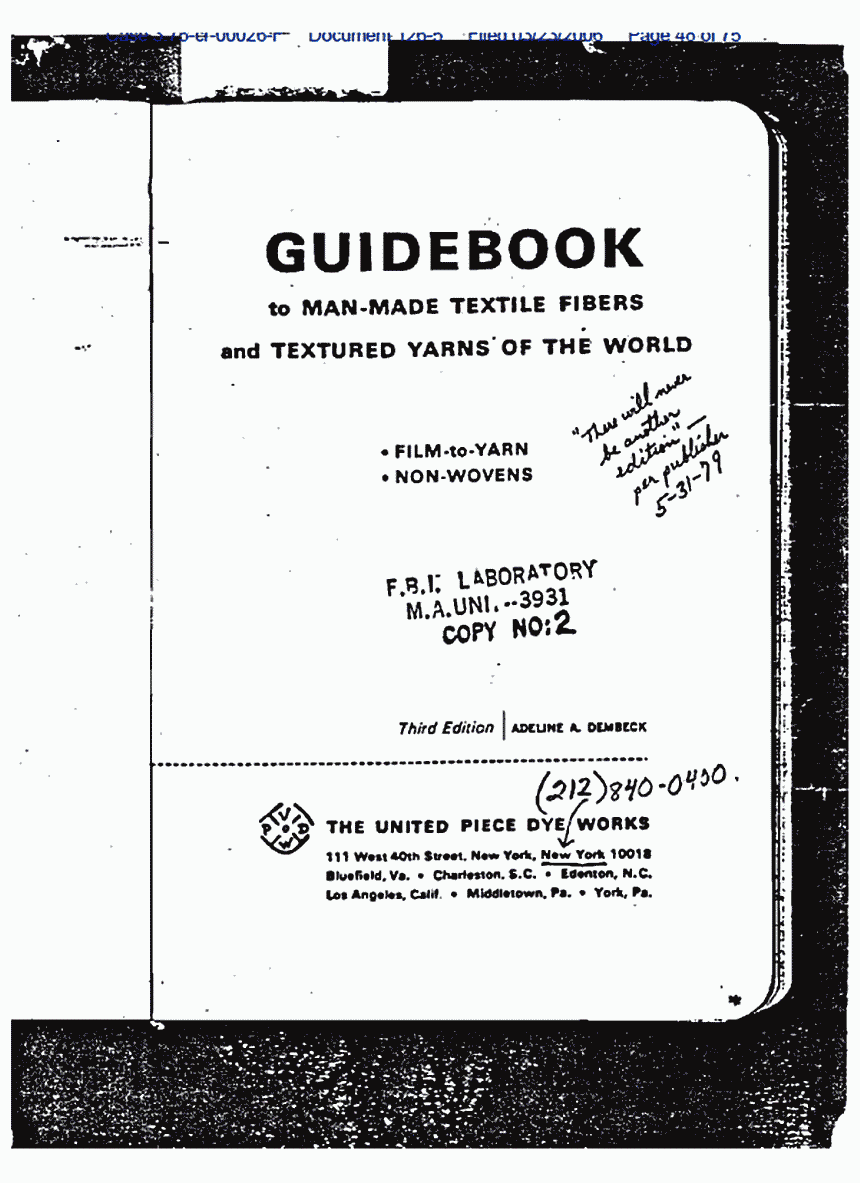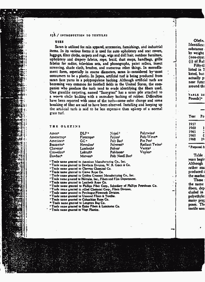 Excerpts from Guidebook to Man-Made Textile Fibers and Textured Yarns of the World, by Adeline A. Dembeck, p. 1 of 2