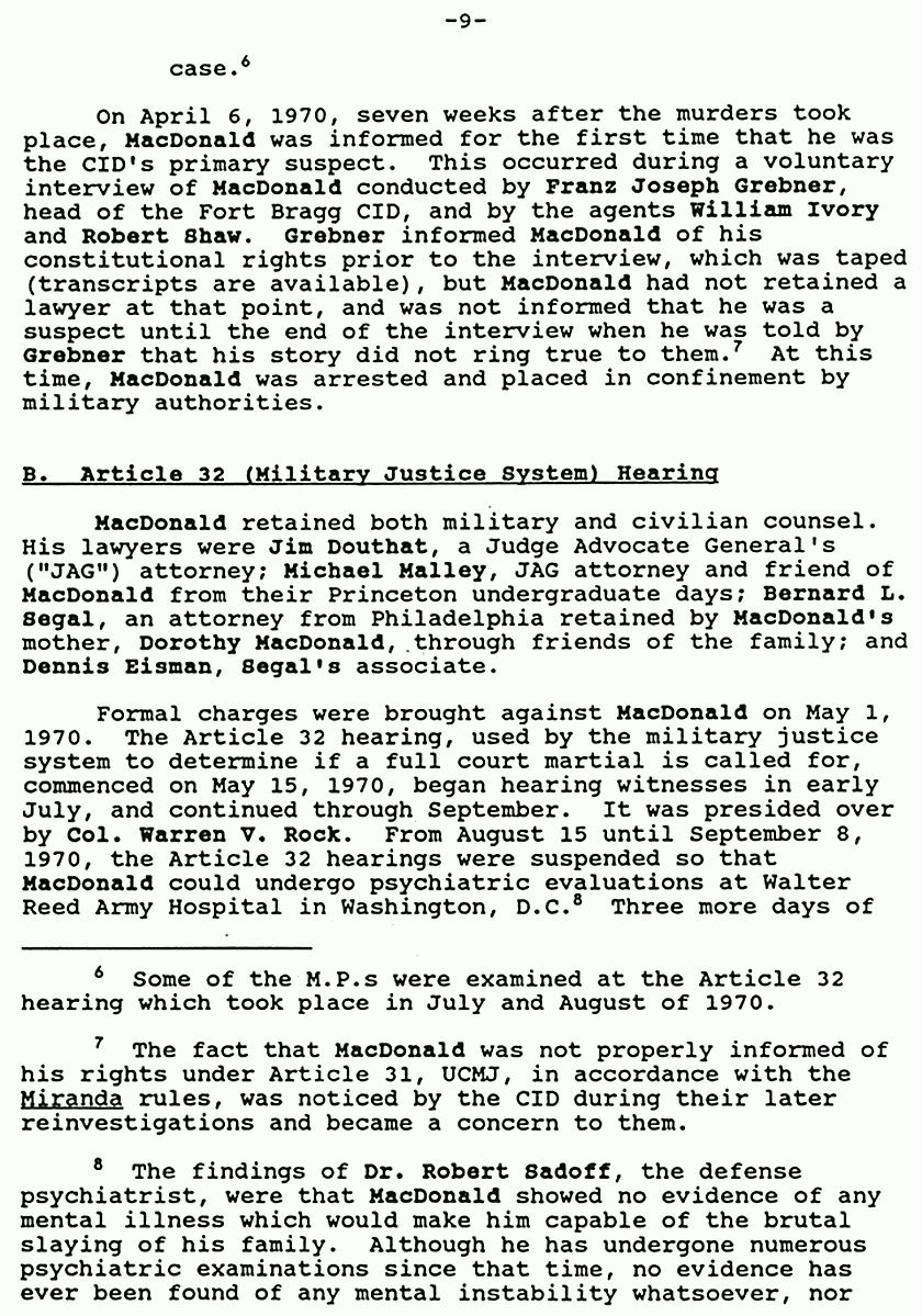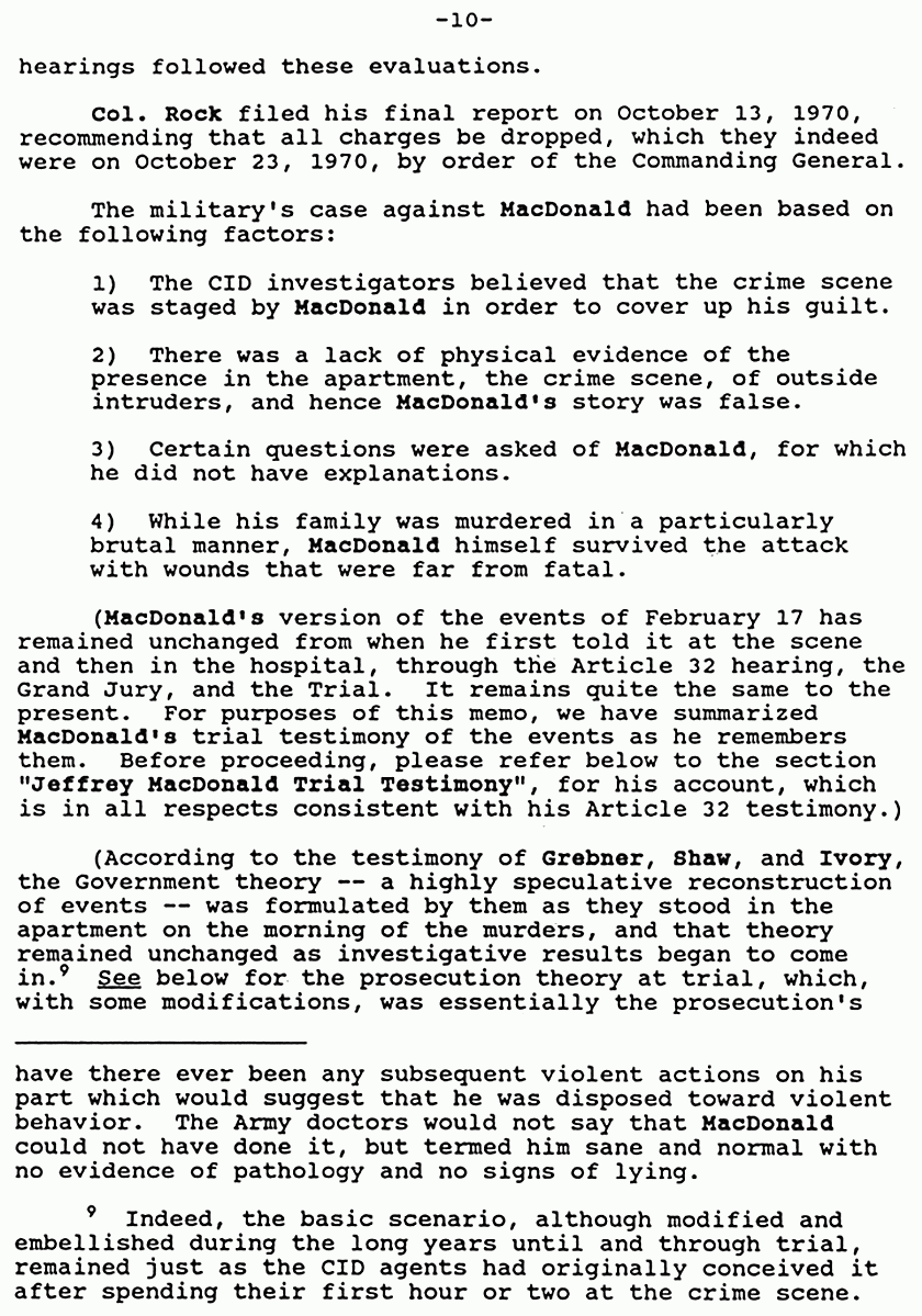 August 9, 1990: Defense team memorandum re: Overview of the Jeffrey MacDonald case,