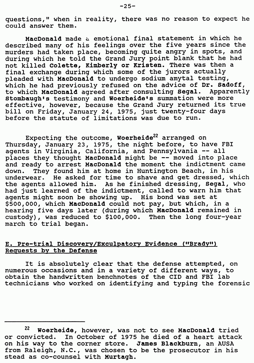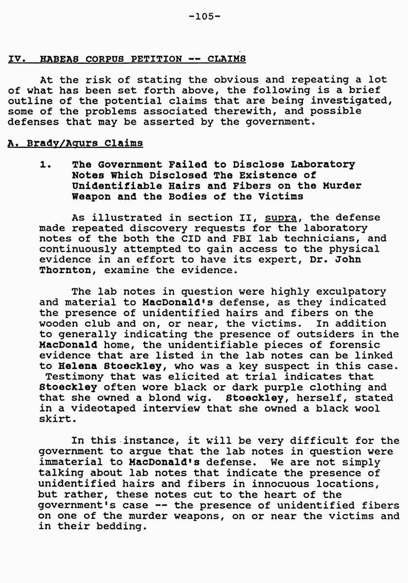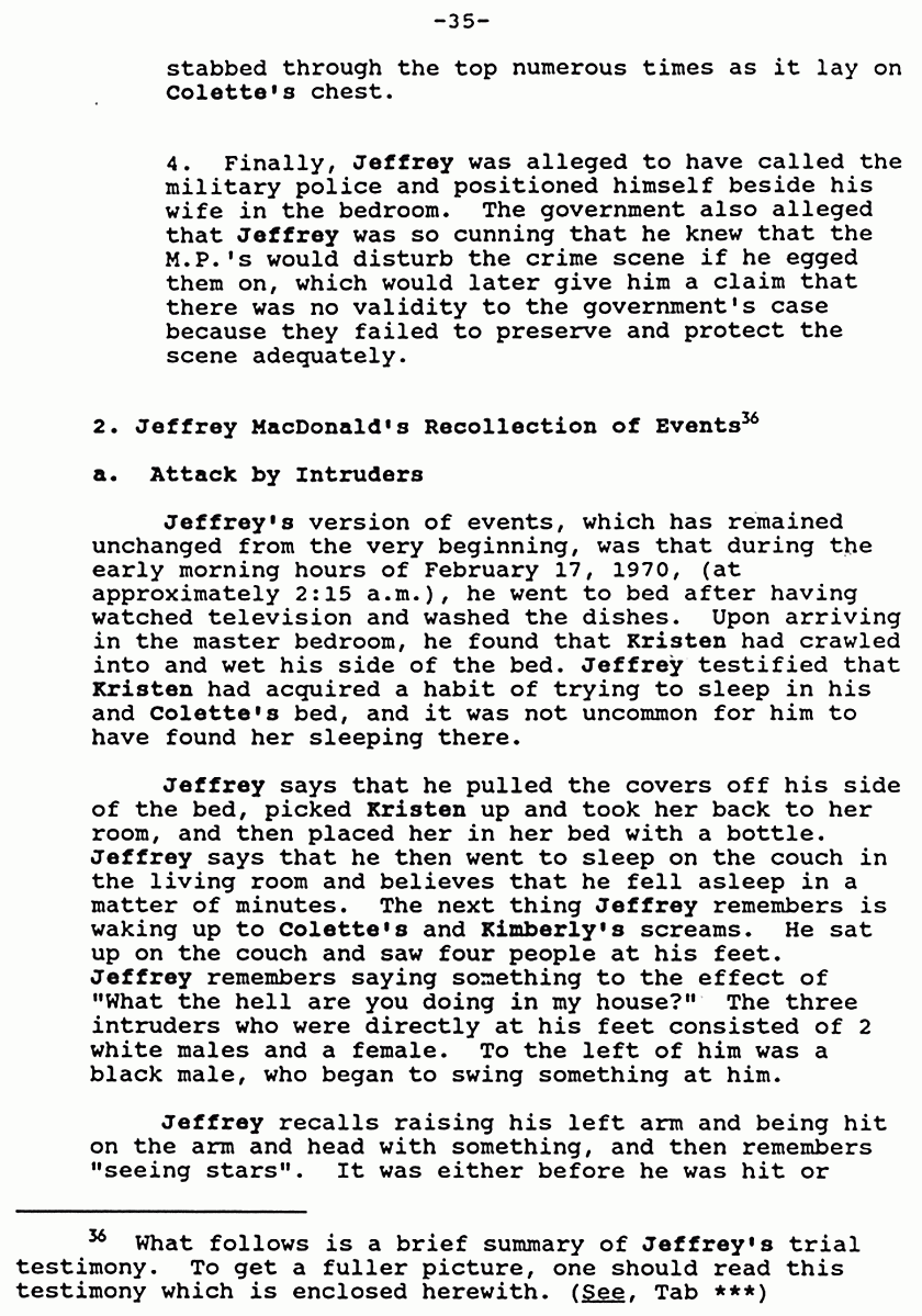 Defense team memorandum re: Overview of the Jeffrey MacDonald case
