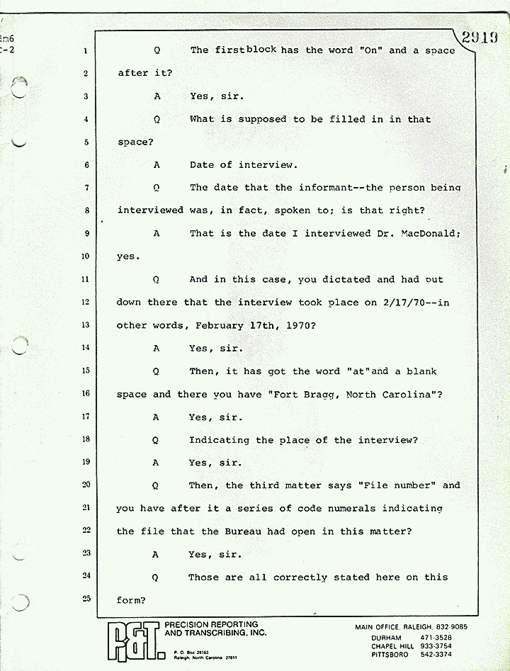 Q Let me talk to you a little bit about the interview form and then we will get to the contents of it. That first interview with Dr. MacDonald took place again at what time on February 17th?