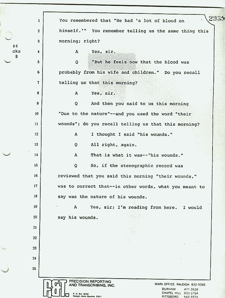 Q "But he feels now that the blood was probably from his wife and children." Do you recall telling us that this morning?