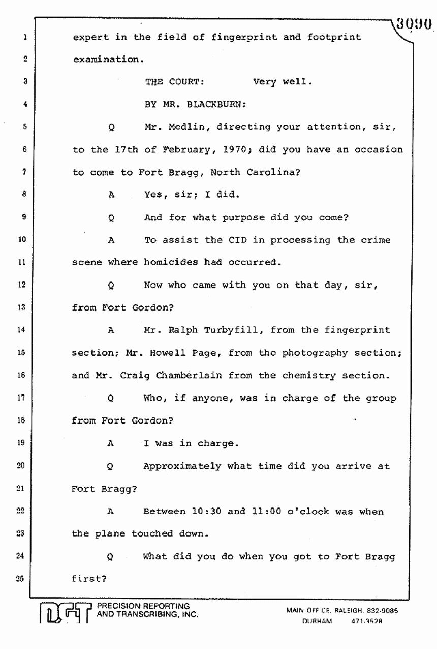 Q Mr. Medlin, directing your attention, sir, to the 17th of February, 1970; did you have an occasion to come to Fort Bragg, North Carolina?