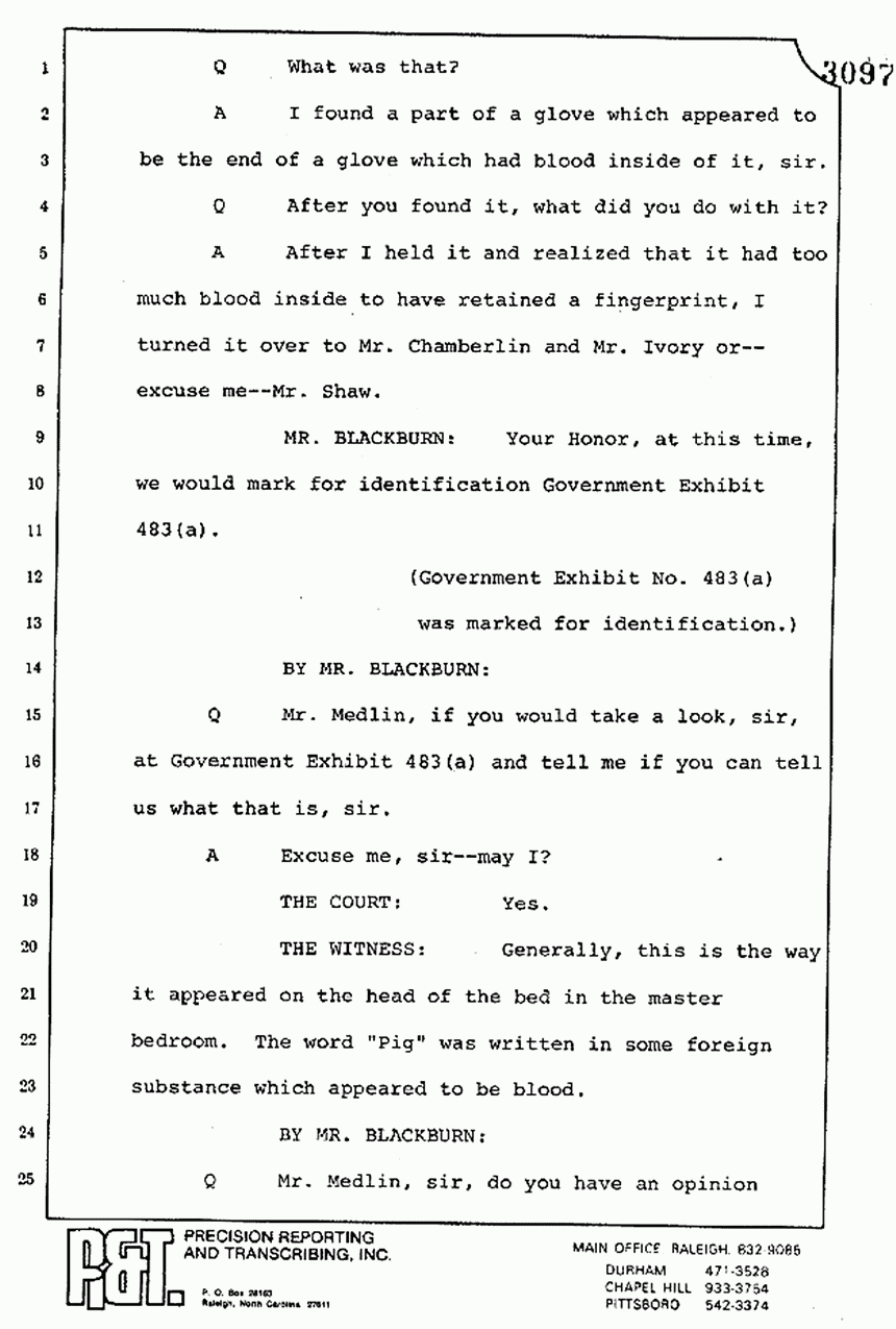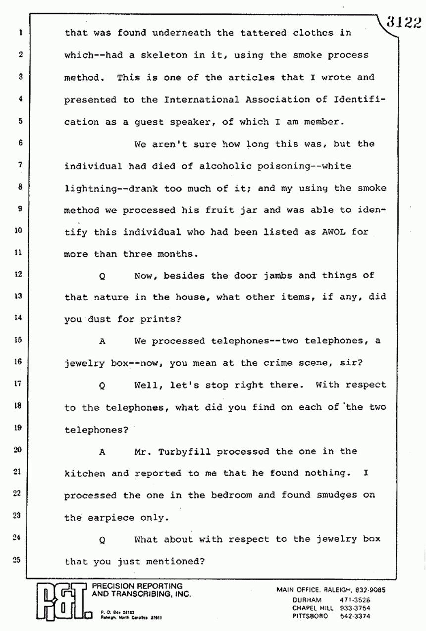 A Mr. Ralph Turbyfill, from the fingerprint section; Mr. Harold Page, from the photography section; and Mr. Craig Chamberlain from the chemistry section.