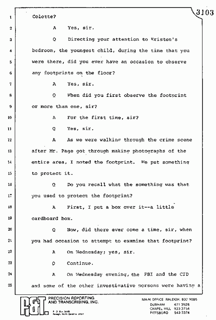 Q Mr. Medlin, I believe you said that subsequently pictures were in fact made of the footprint?