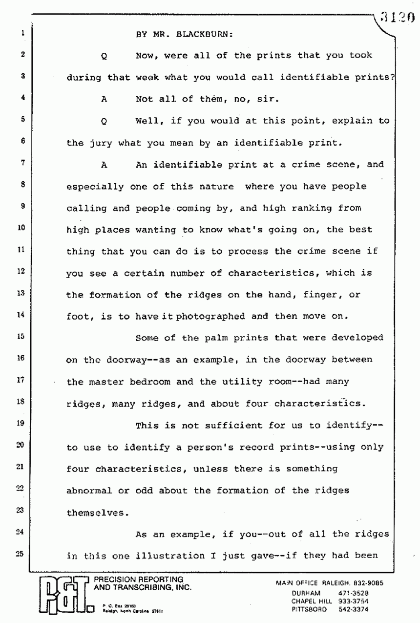 MR. BLACKBURN: Your Honor, I think this is the appropriate time to offer this witness as an expert in the field of fingerprint and footprint examination.