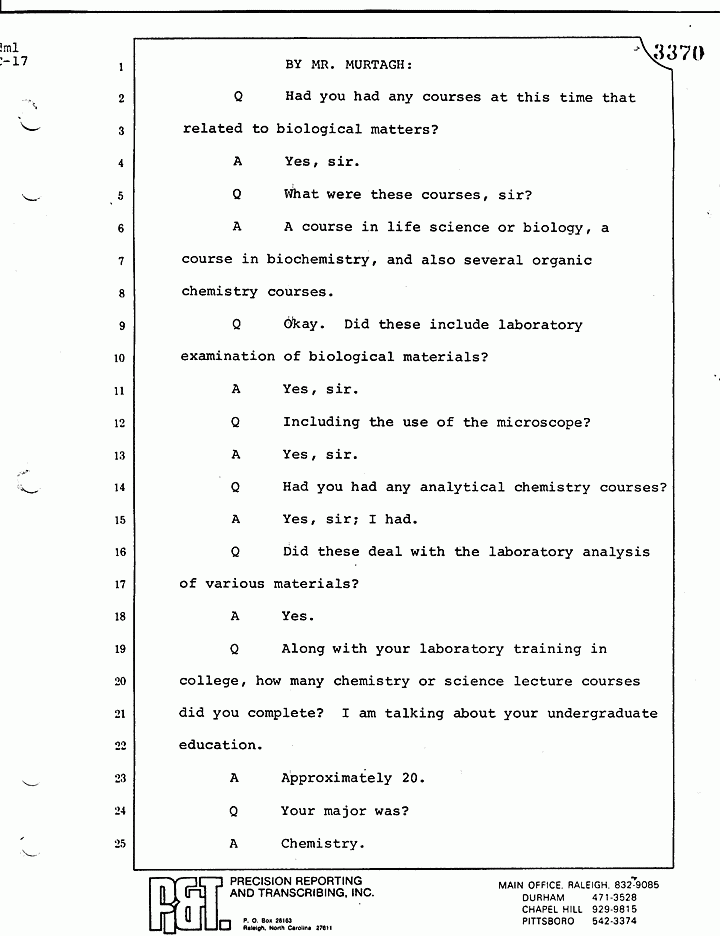 Q Along with your laboratory training in college, how many chemistry or science lecture courses did you complete? I am talking about your undergraduate education.