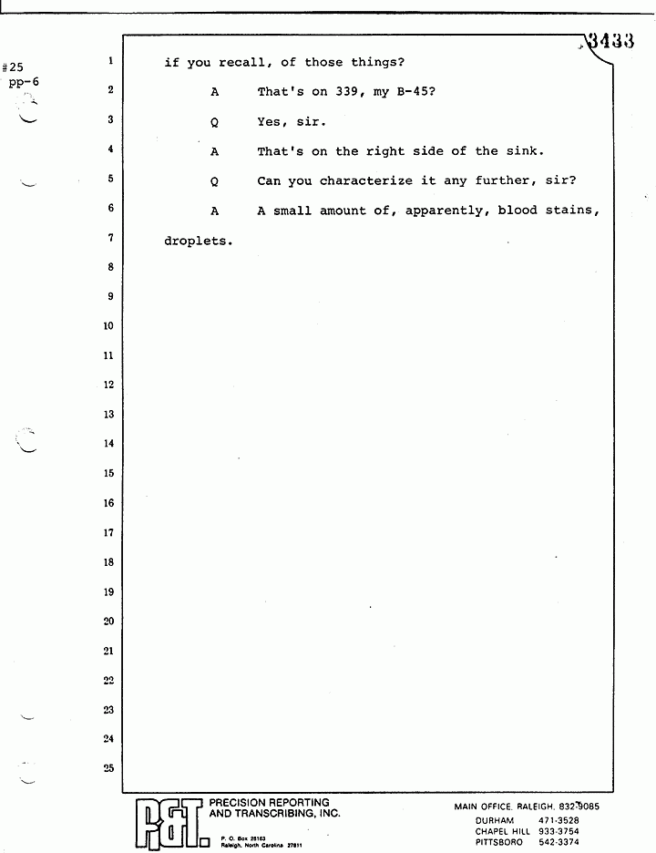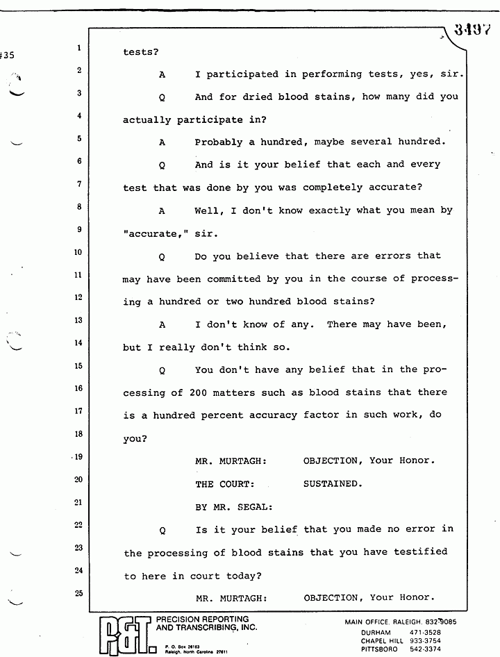 Q Is it your belief that you made no error in the processing of blood stains that you have testified to here in court today?