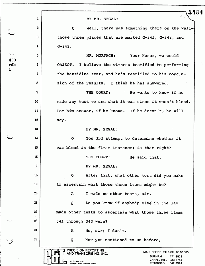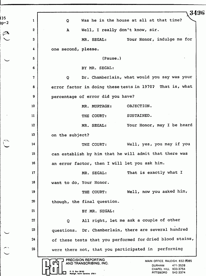 MR. SEGAL: I don't believe so. That is the bottom-line question. It is my request to ask what is his error factor in having processed these blood stains.