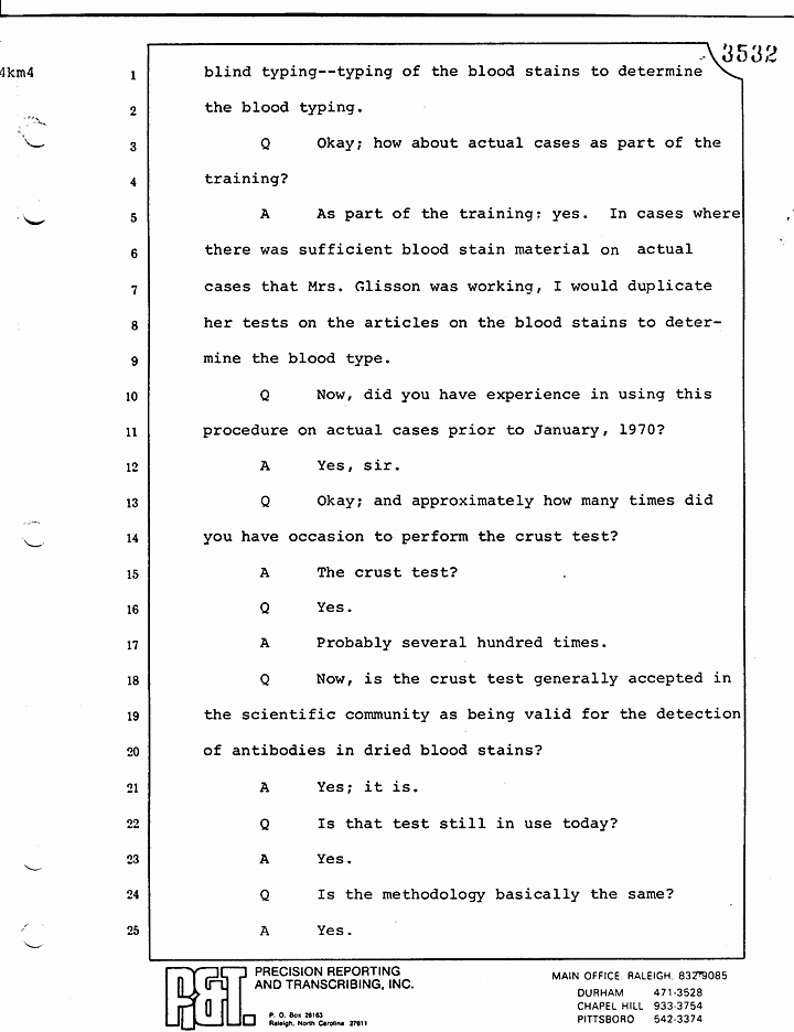 Q Now, is the crust test generally accepted in the scientific community as being valid for the detection of antibodies in dried blood stains?