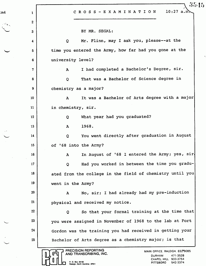Q So that your formal training at the time that you were assigned in November of 1968 to the lab at Fort Gordon was the training you had received in getting your Bachelor of Arts degree as a chemistry major; is that right?