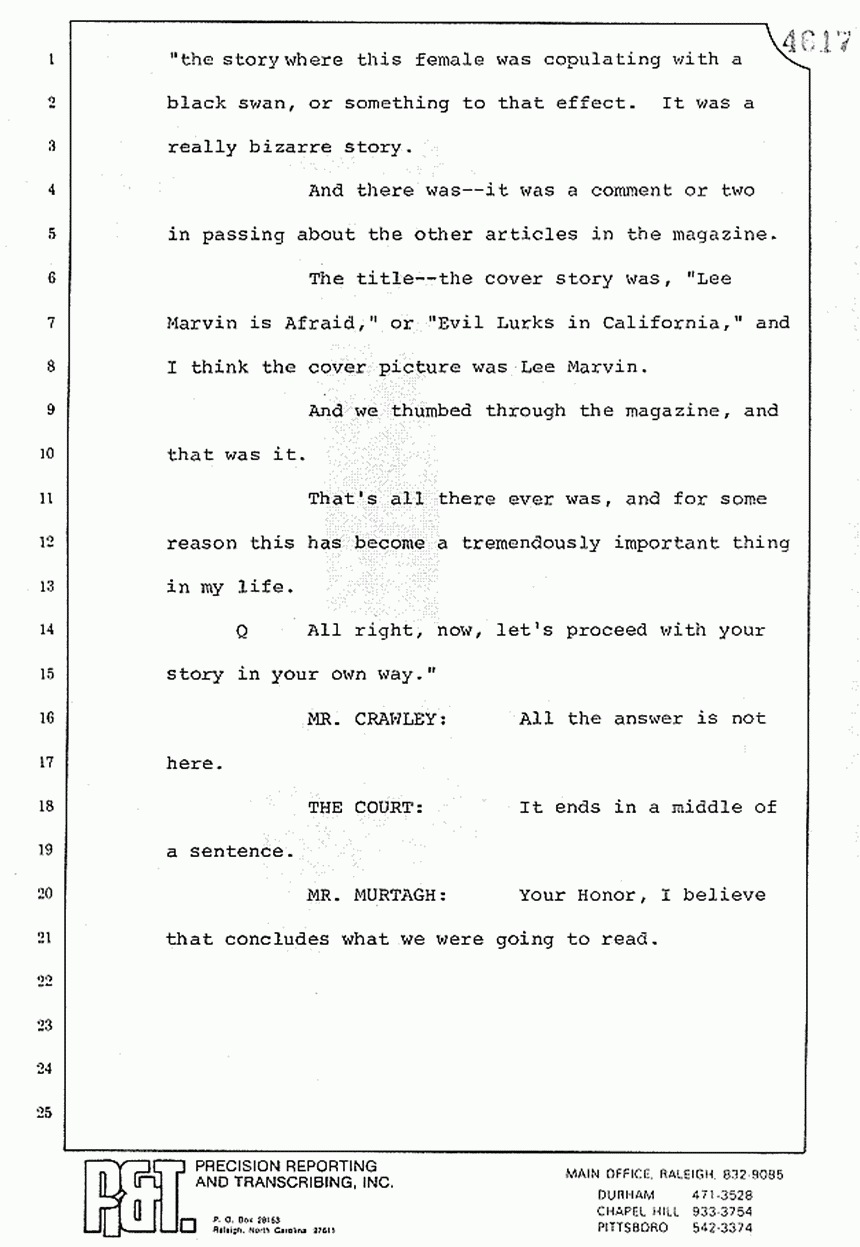 August 10, 1979: Reading of Jeffrey MacDonald's statements and Esquire magazine articles at trial, p. 17 of 151