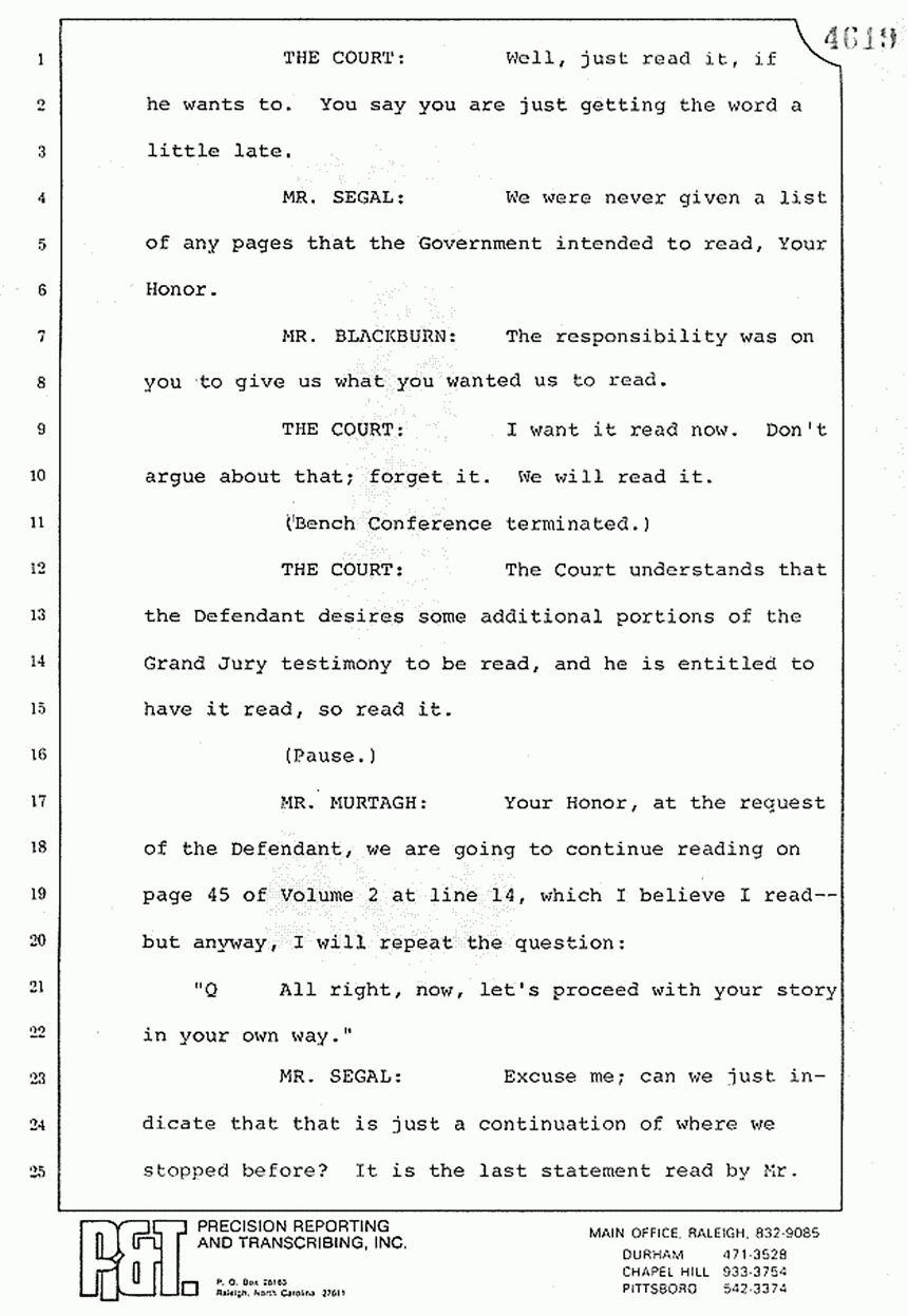 August 10, 1979: Reading of Jeffrey MacDonald's statements and Esquire magazine articles at trial, p. 18 of 151
