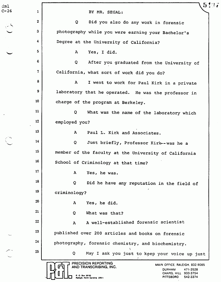 Q Just briefly, Professor Kirk -- was he a member of the faculty at the University of California School of Criminology at that time?