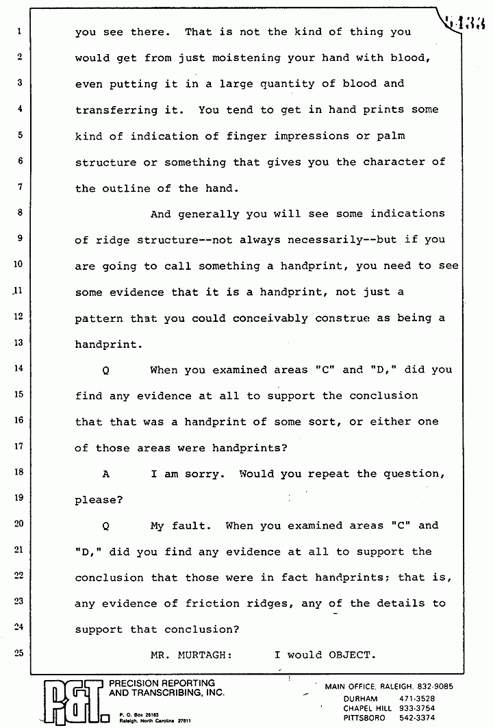 Q When I say "fingerprints," I would also like to know whether or not that included examinations of something called friction ridge impressions? Did you do any of that kind of work?