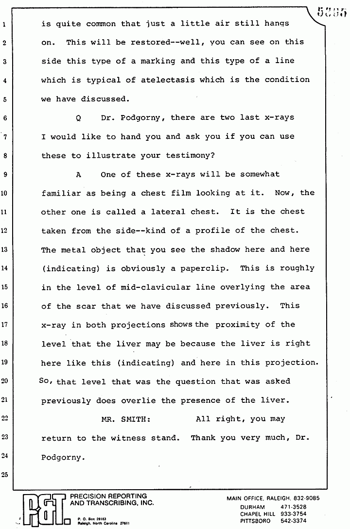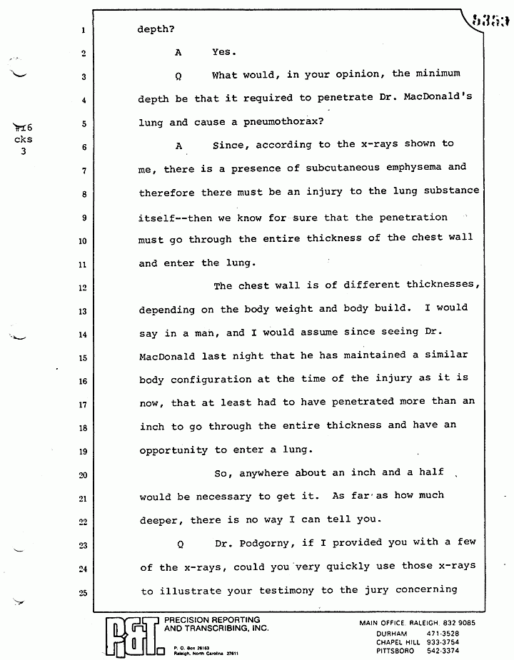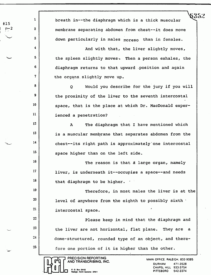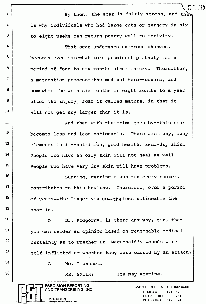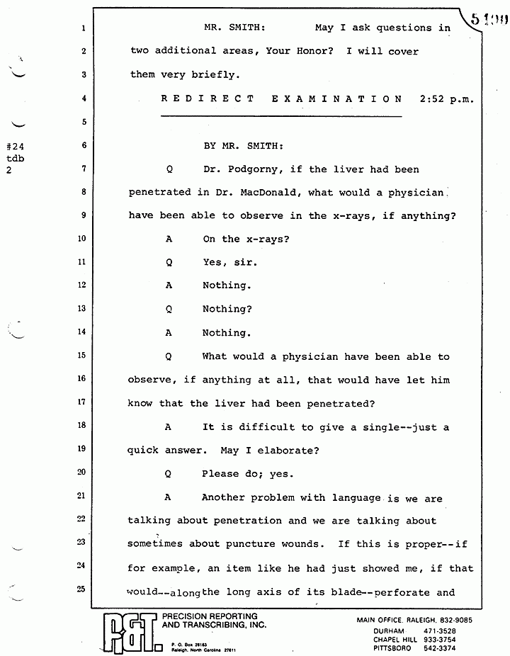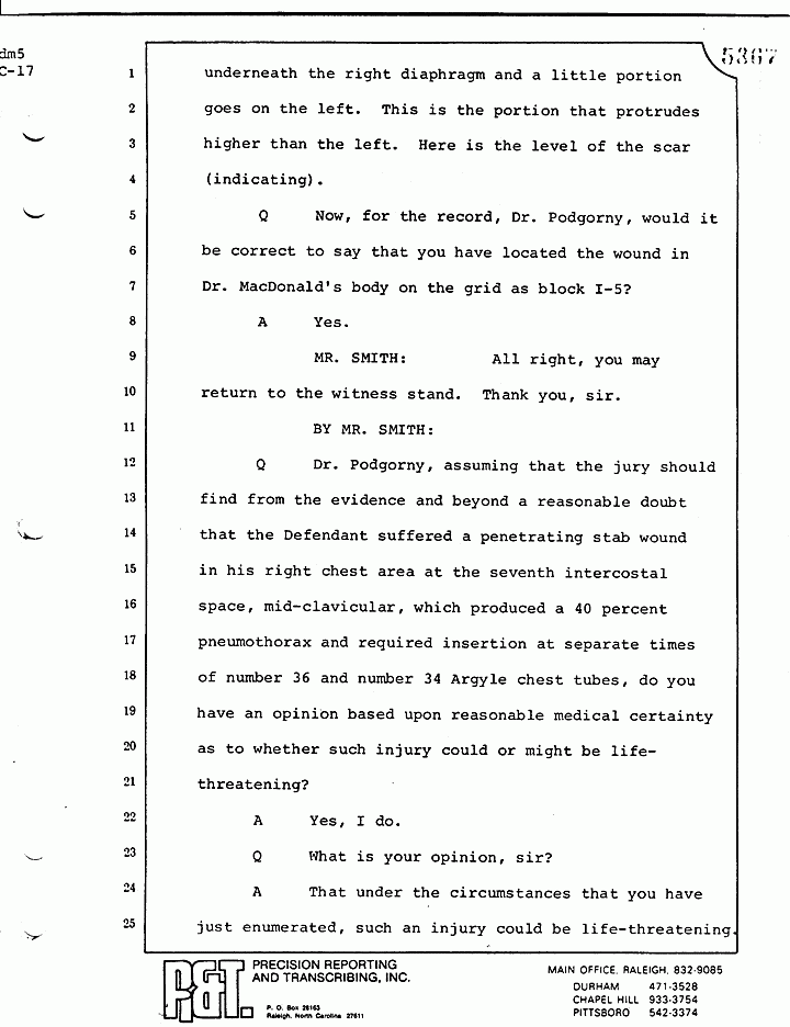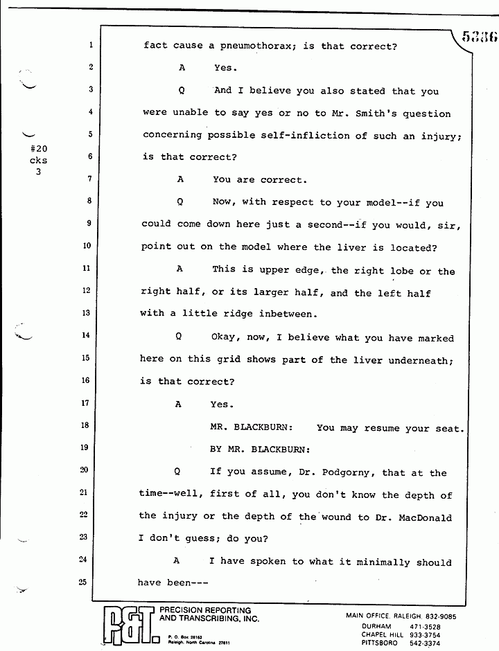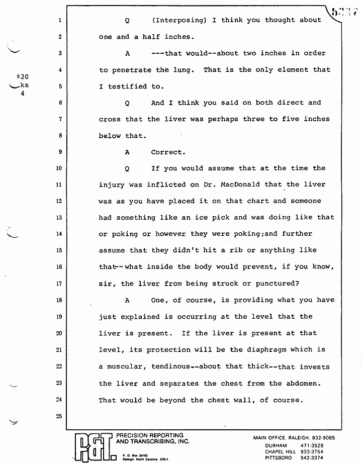Q But it is quite possible, isn't it Dr. Podgorny, that Dr. MacDonald's liver was penetrated and there was just never any evidence that this occurred. Would this be correct?