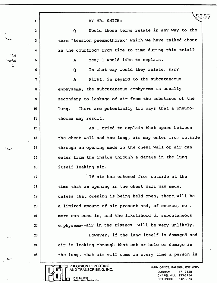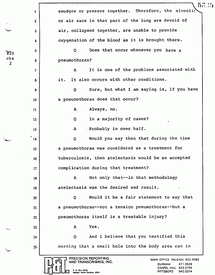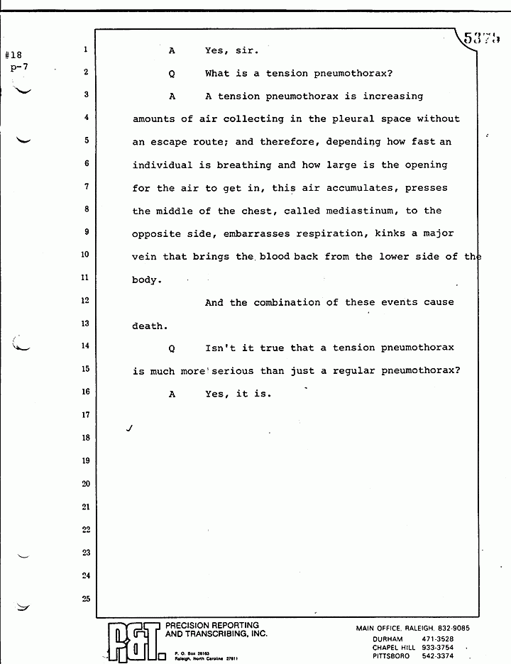 Q And I believe you also testified that in treating a pneumothorax, a chest tube is proper medical treatment?