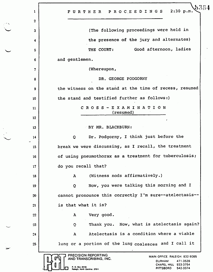 Q Dr. Podgorny, would you state whether in preparation for your testimony today you have had an opportunity to review the testimony of Drs. Gemma, Bronstein, and Jacobson who have previously testified in this case?