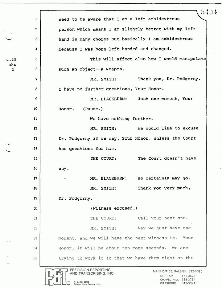 MR. SMITH: We would like to excuse Dr. Podgorny if we may, Your Honor, unless the Court has questions for him.