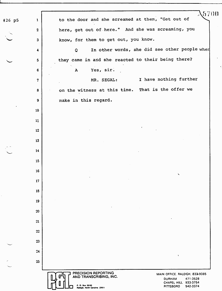 THE COURT: She lived across the street from this Stoeckley witness. I said get right on into the thing.