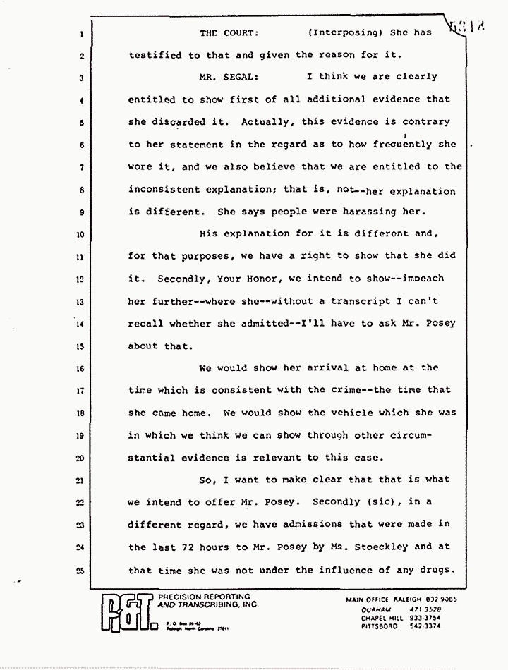 In that connection, I have studied the transcript of the witnesses' testimony -- Stoeckley's and the six witnesses whose out-of-court statements are posed to be offered -- the briefs of both sides, and all of the case law -- relevant case law -- that I could find, which includes the Advance Sheet of the Federal Second, which came Sunday and which, oddly enough, contained a case involving 804(b)(3), but unhappily not directly in point.