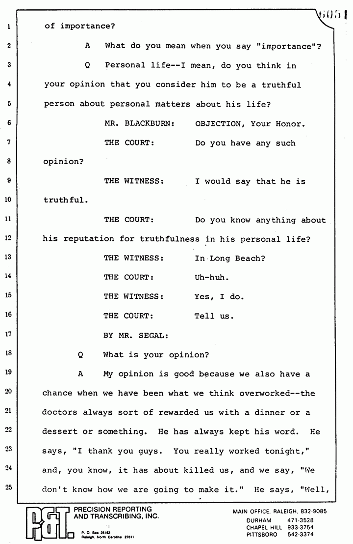 THE COURT: Do you know anything about his reputation for truthfulness in his personal life?