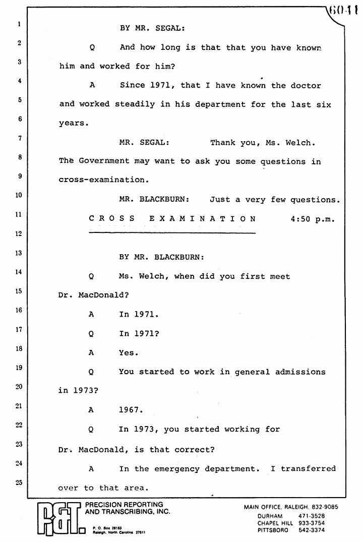 Q Ms. Welch, when did you first meet Dr. MacDonald?