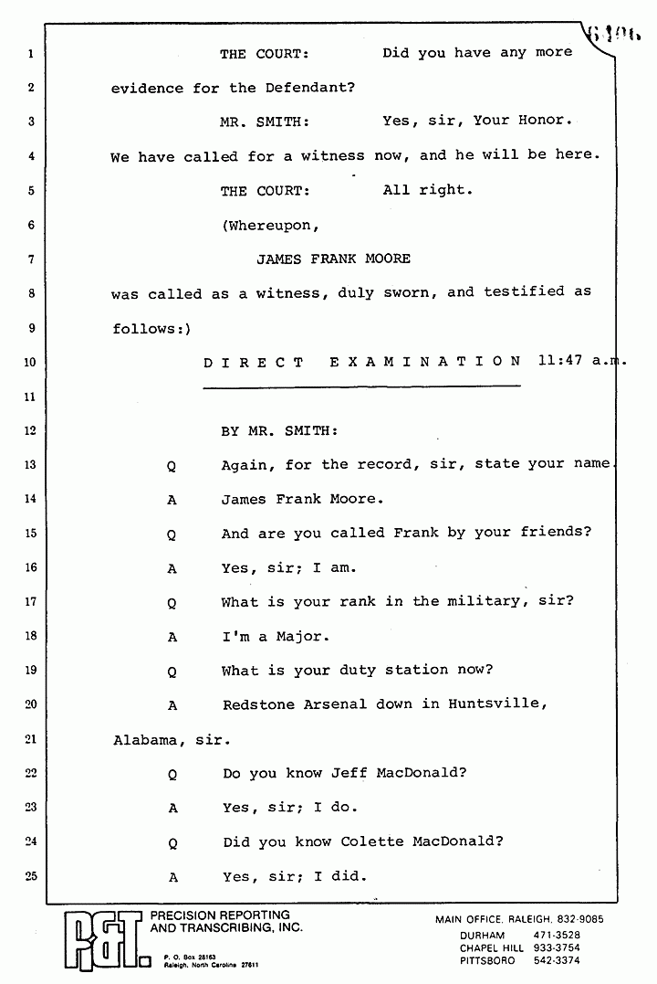 Q Would it be accurate to say, Major Moore, that you did not want the CID to talk to your daughter who had spent the weekend previous to the murders at the MacDonald house?