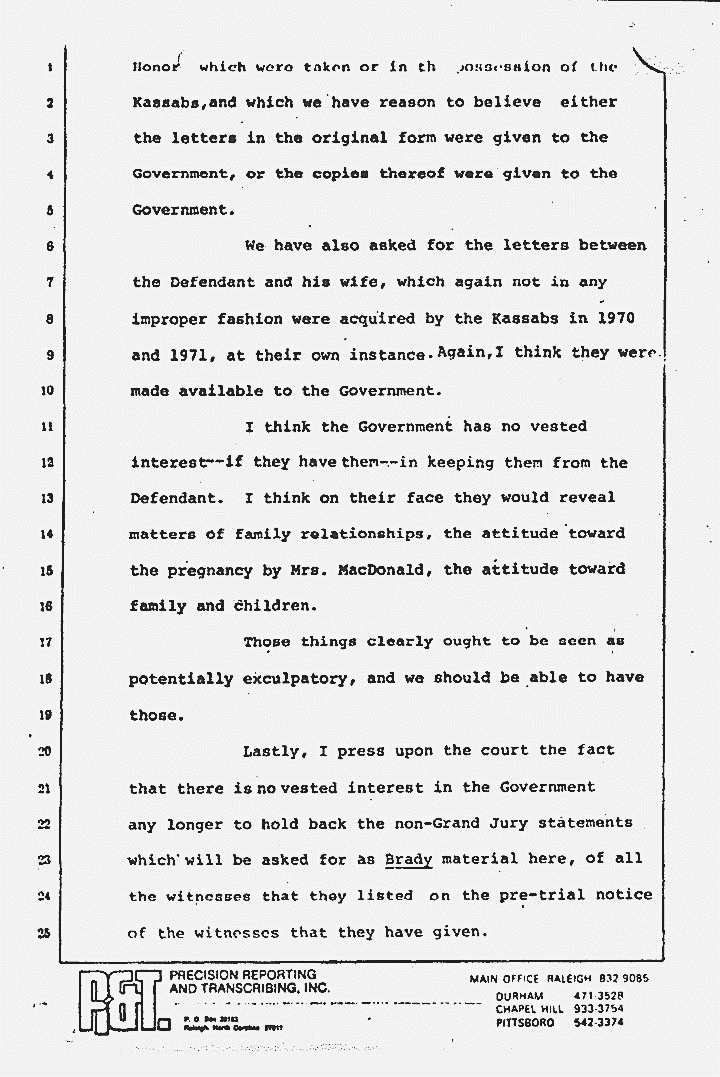 With respect to the letters between Dr. MacDonald and his wife, the Government simply does not have those and has never had those, and I have never seen them.