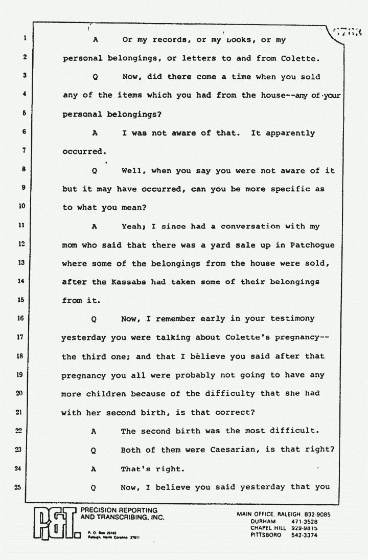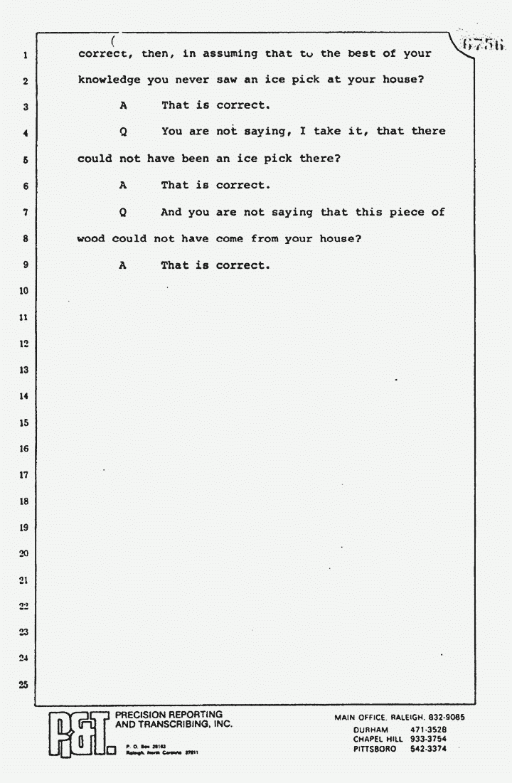 Q Now, with respect to the ice pick that was shown you late yesterday afternoon, do you recall the testimony of Mildred Kassab and Pamela Kalin, both of whom stated that they had at various times been in your kitchen and for various reasons had used an ice pick? Do you recall that testimony?