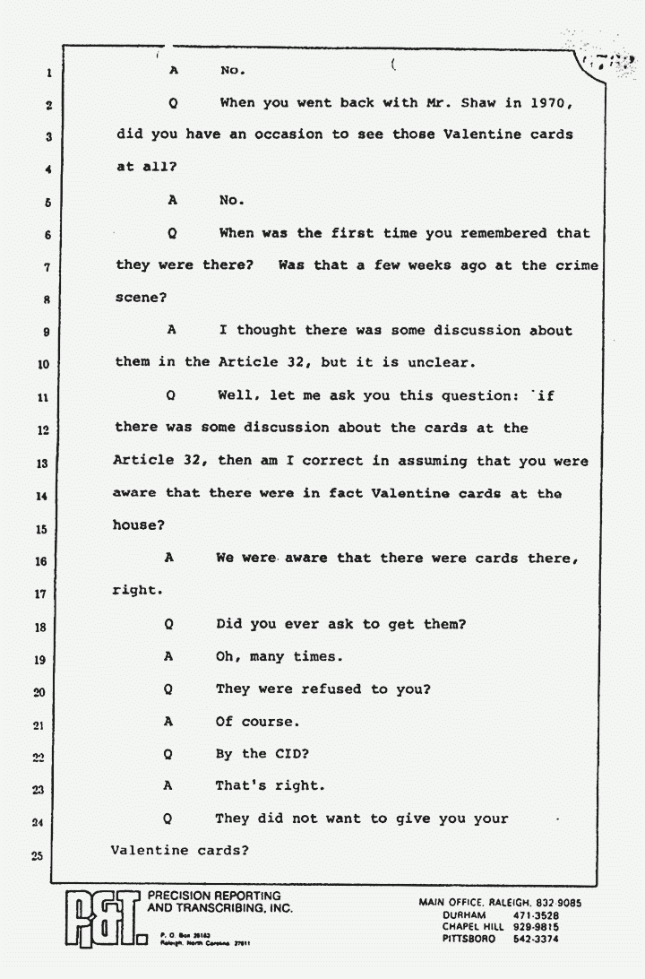 Q With respect to some Valentine cards that were shown to you yesterday morning, I believe from the children to you, you of course got those Valentines on Valentine's Day in 1970?