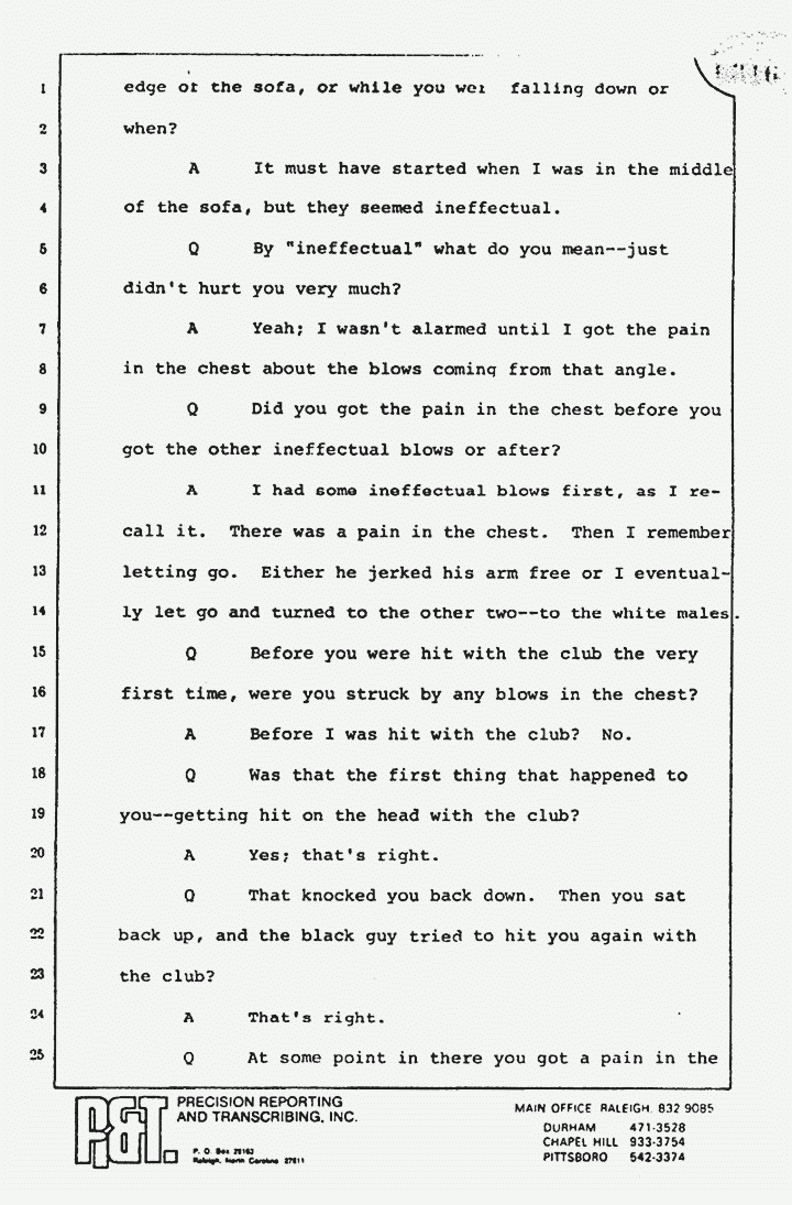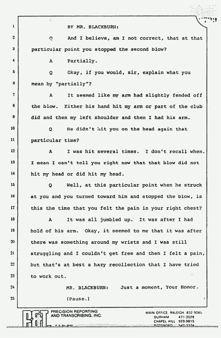 And suppose, sir, that the jury further finds that the injuries that you sustained were not consistent in degree of seriousness that they sustained, and that you are quite obviously still alive. Do you have any explanation for that?