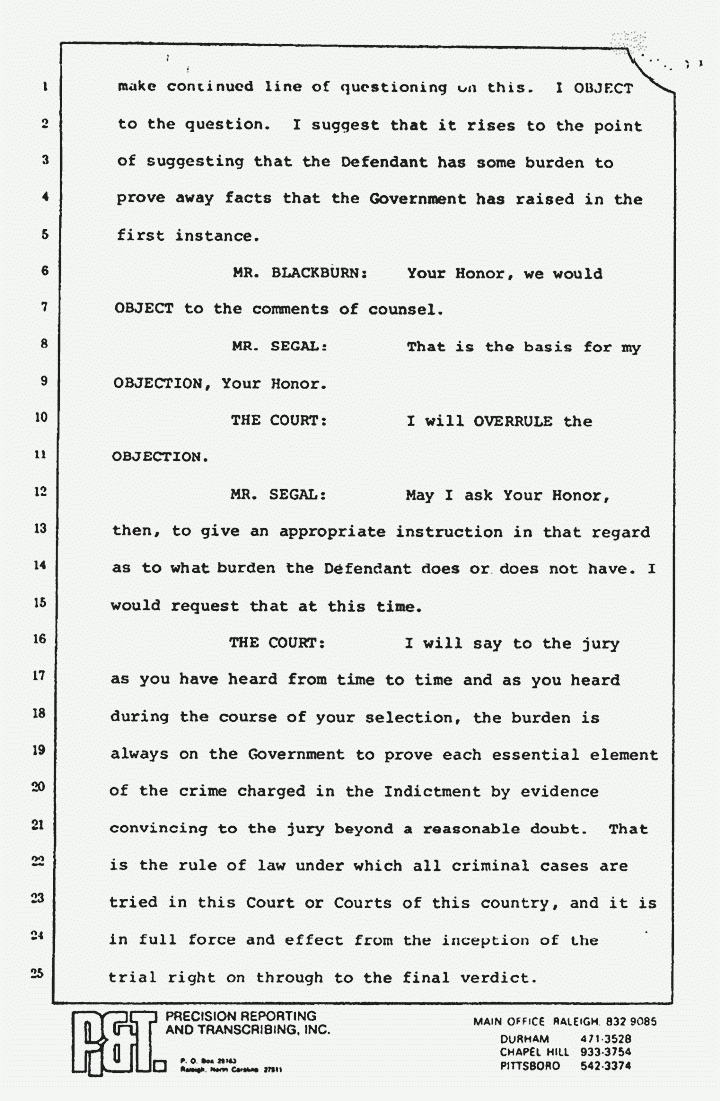 MR. SEGAL: Your Honor, that is OBJECTED to as argumentative. That is not a question at all.